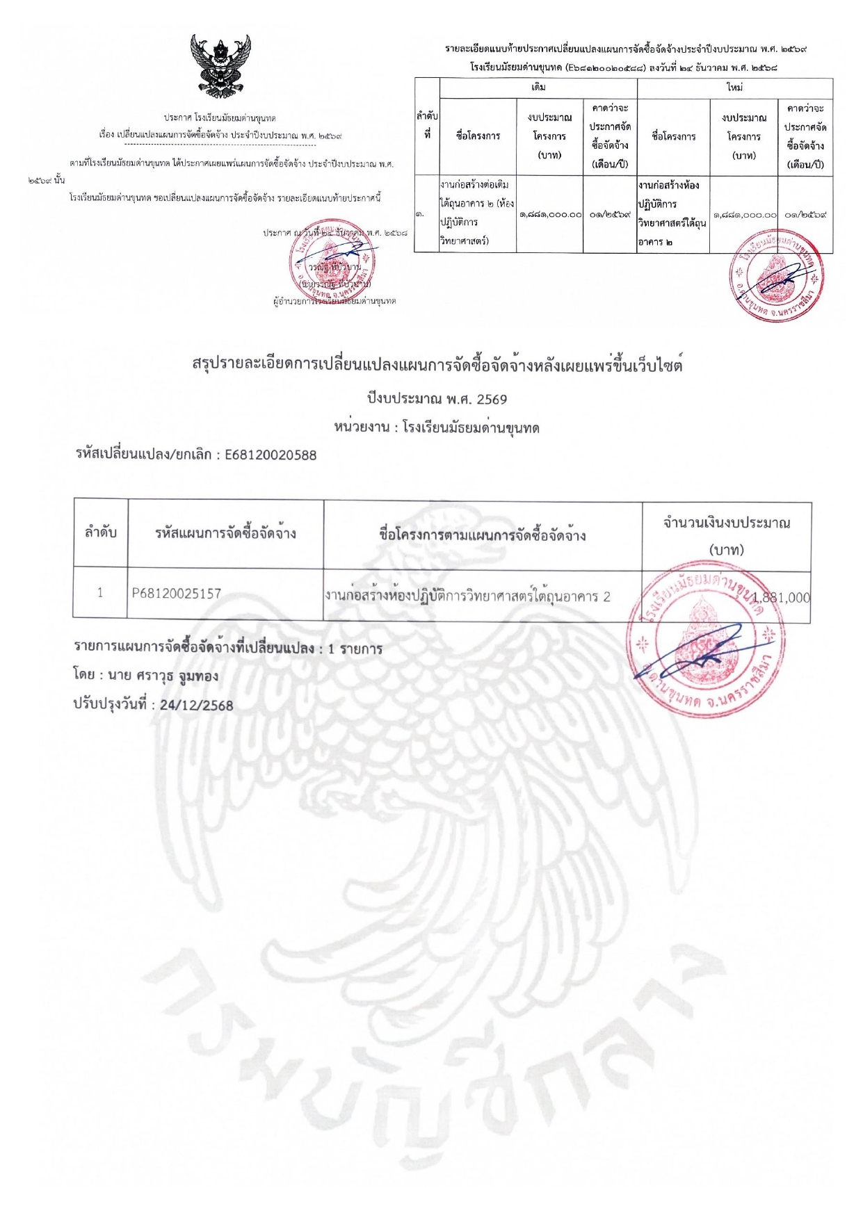 ประกาศเปลี่ยนแปลงแผนจัดซื้อจัดจ้าง ประจำปีงบประมาณ พ.ศ. 2569